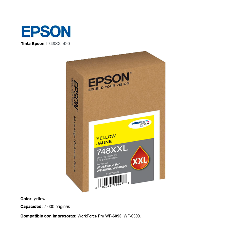 CARTUCHO TINTA EPSON T748XXL420 748XXL YELLOW