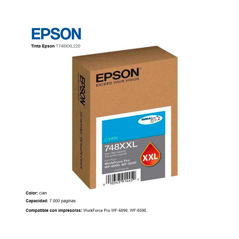 Cartucho de Tinta Cyan Alta Capacidad Epson T02S220
